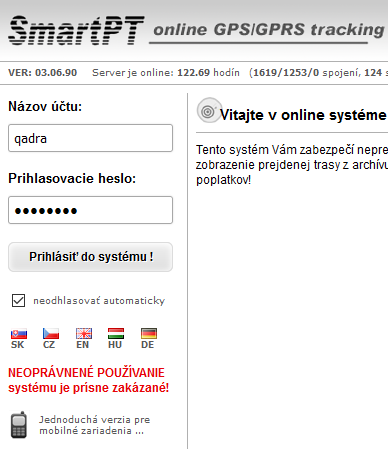 STEP 1 - login to our system at WWW.GPSPOLOHA.SK
