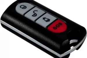 Napájany dvoma batériami typu CR pre 3 roky prevádzky. Dosah diaľkového ovládania je až 15 metrov od vozidla.